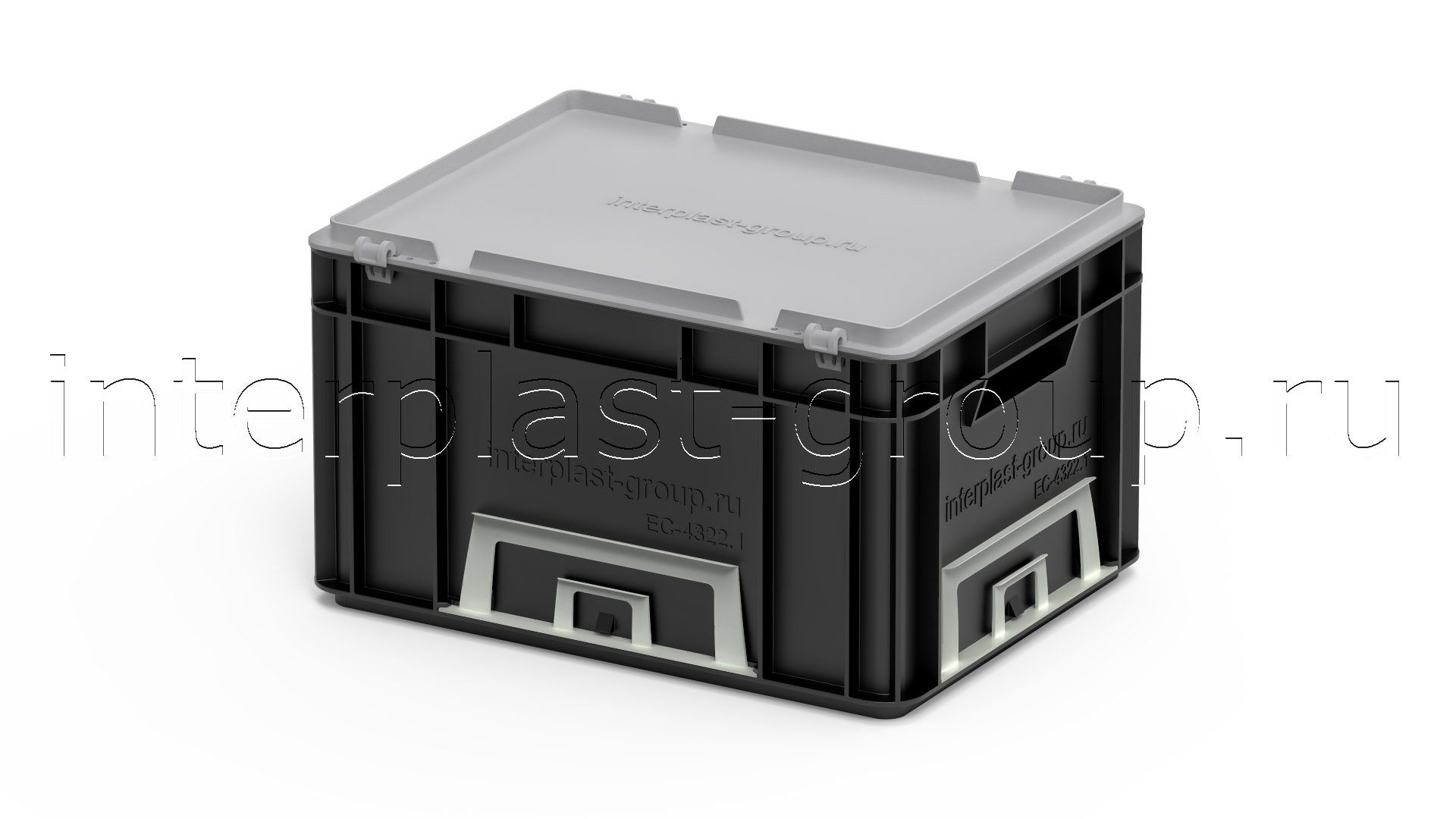 Евроконтейнер открытые ручки/сплошное дно (черный), 400x300x220 мм