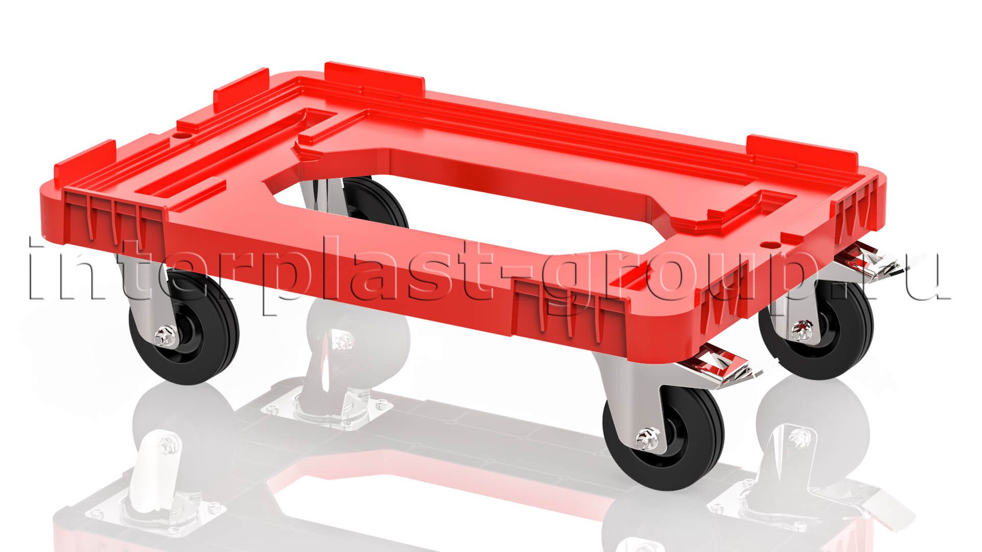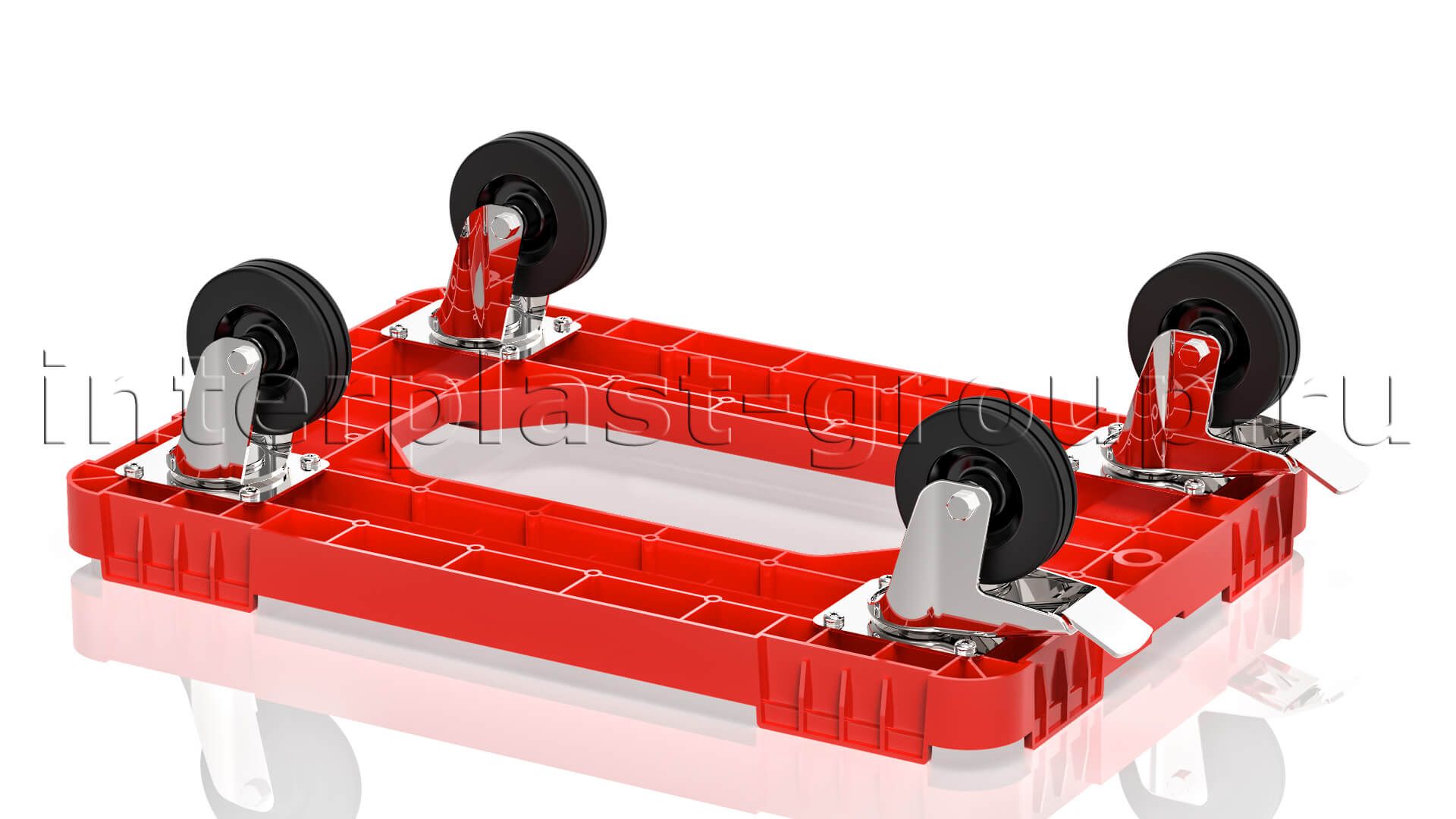 Тележка пластиковая с отверстием 2 колеса с тормозом красная в Одинцово