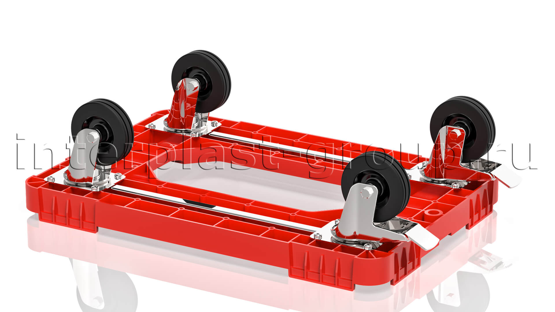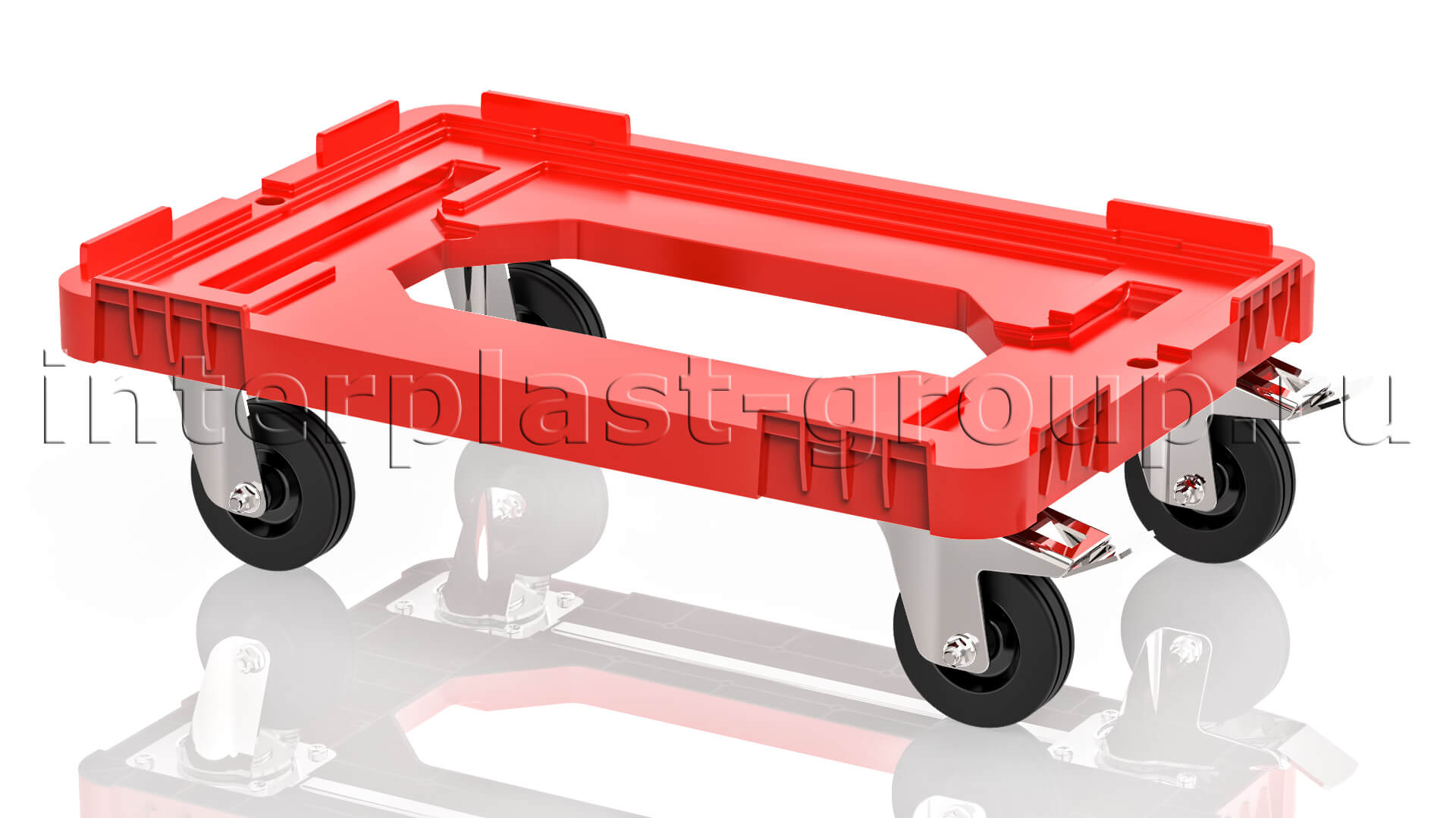 Тележка пластиковая с отверстием 2 колеса с тормозом усиленная красная в Одинцово