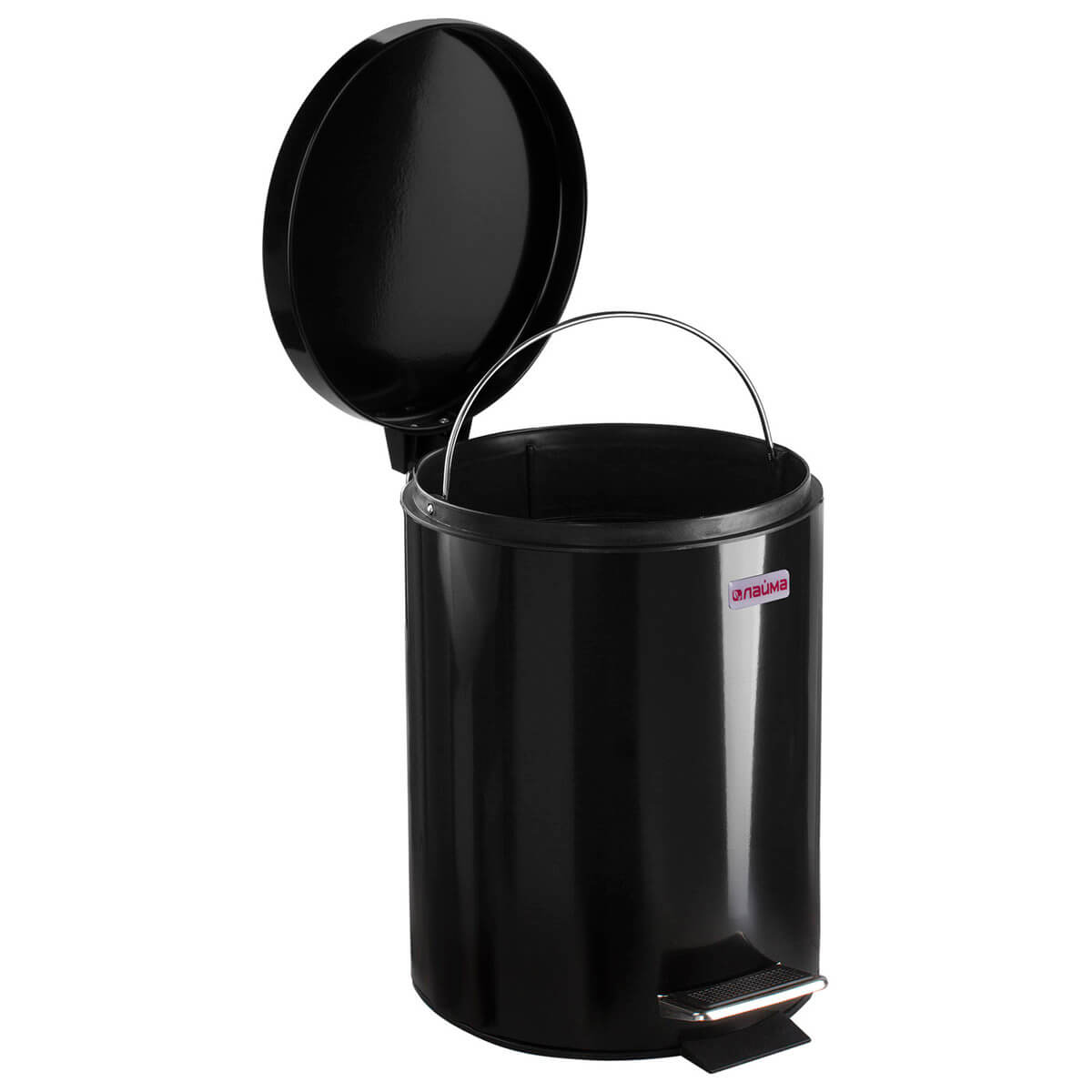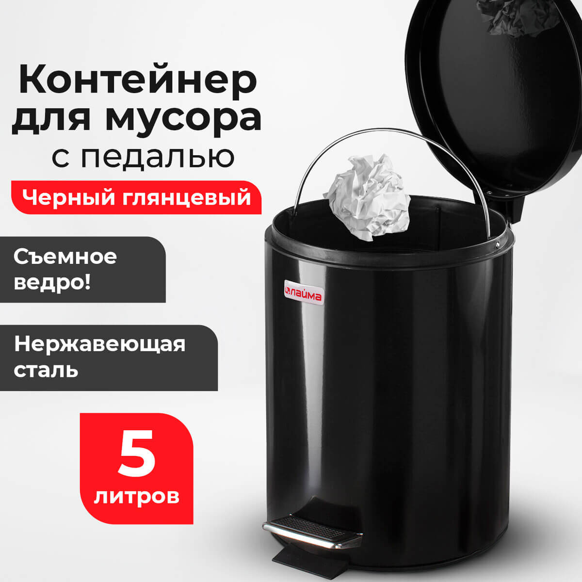 Ведро-контейнер для мусора (урна) с педалью LAIMA Classic, 5 л, черное, глянцевое, металл, со съемным внутренним ведром