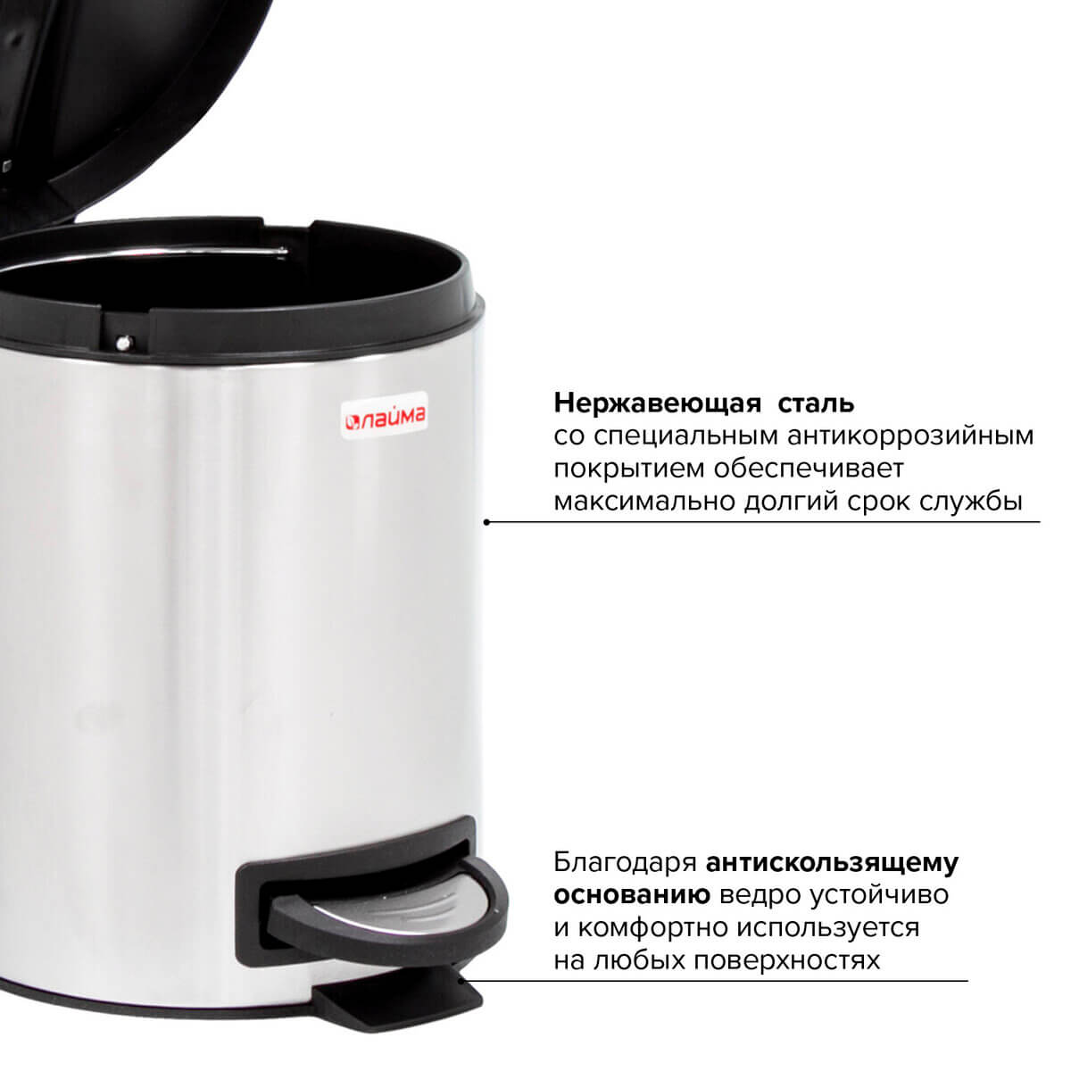 С вместительностью 5 литров, он идеально подходит для помещений с невысокой проходимостью. Педаль для открывания обеспечивает максимальное удобство использования, а плотно прилегающая крышка надёжно изолирует запахи. Съемное внутреннее пластиковое ведро с удобной ручкой для извлечения делает процесс утилизации максимально простым.